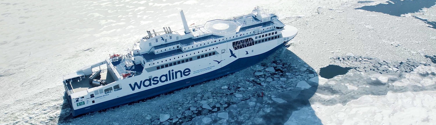 Det moderna hybridfartyget Aurora Botnia drivs med biogas och batterier. Fartyget har tilldelats Nyckelflaggan som en symbol för finländskt arbete. Wasaline är en del av Stena Line.